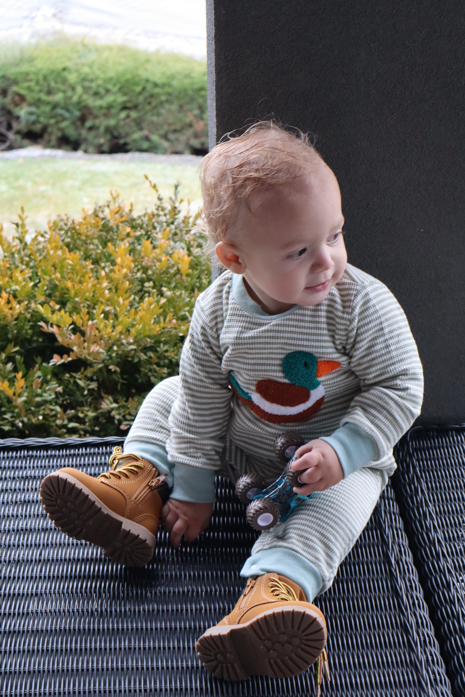 Cozy, cute, and made for everyday wear. This soft cotton knit baby set features an adorable embroidered duck detail and a gentle stretch that keeps little ones comfortable while they crawl, play, and cuddle. The classic striped look makes it perfect for fall/winter layering from stroller walks to cozy days at home.